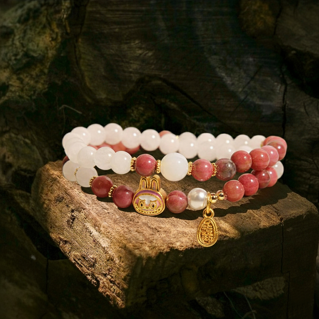 Kalyana Aura Rose Quartz Pearl Gourd Pendant Bracelet