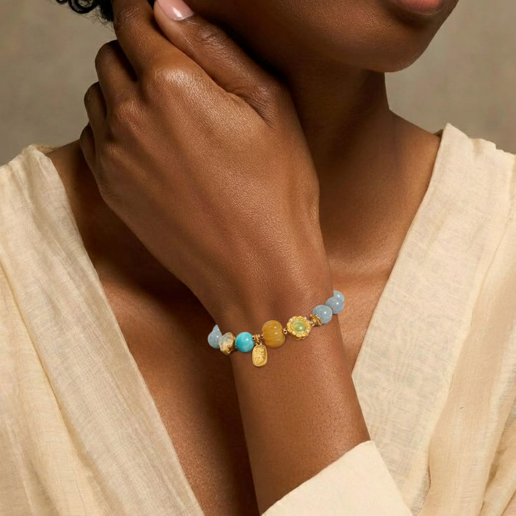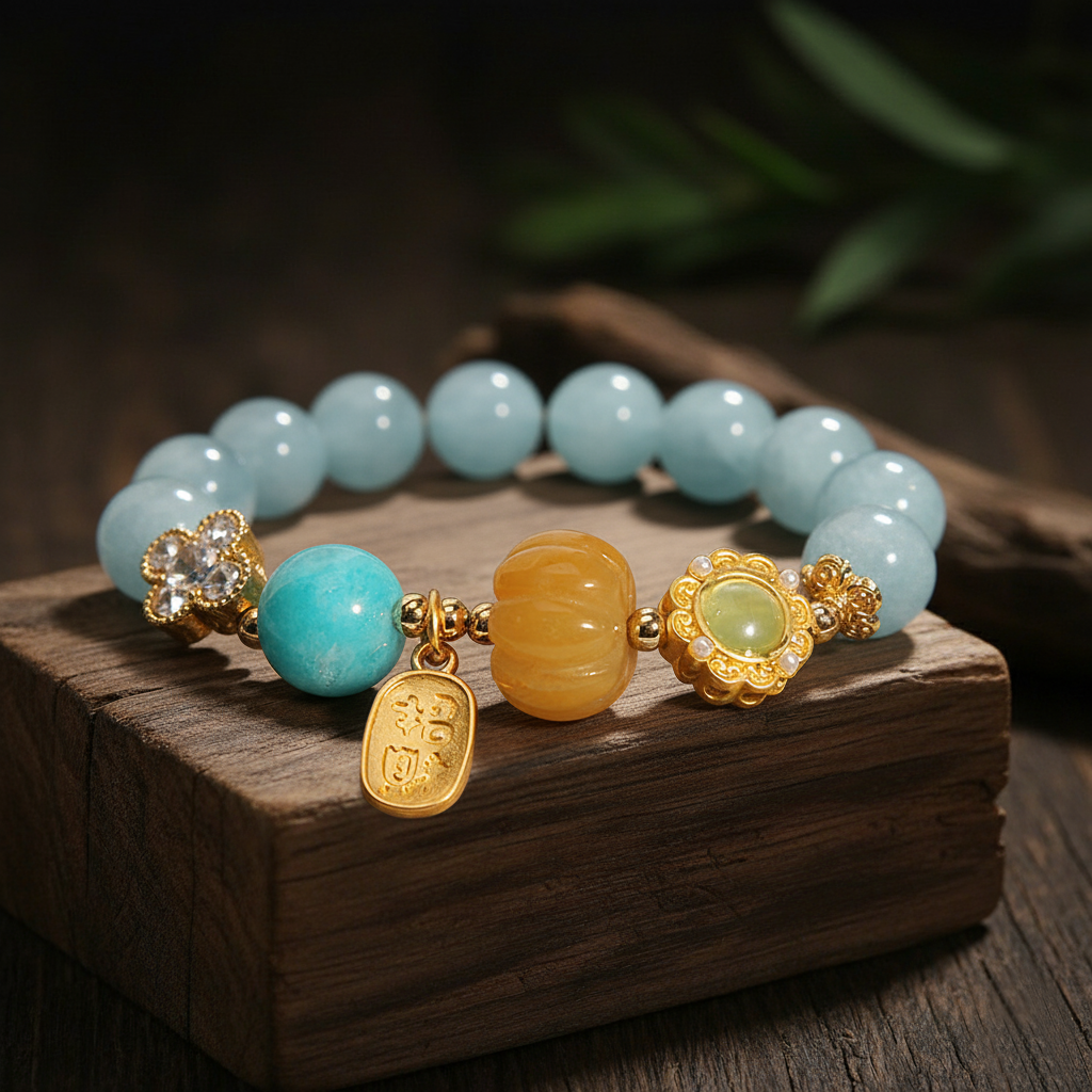 Kalyana Aura Blue Water Jade Gourd Pendant Bracelet