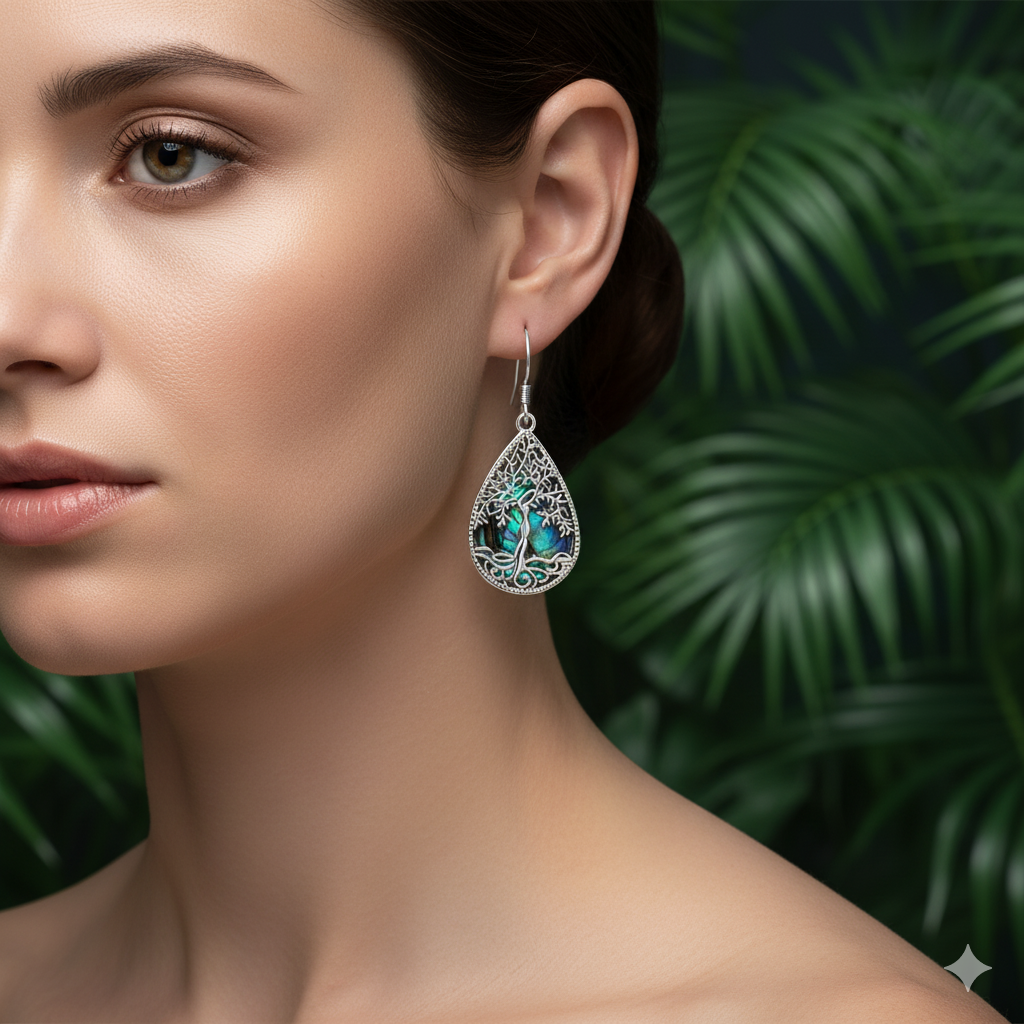 Kalyana Aura Sterling Silver Abalone Shell Teardrop-Shaped Tree of Life Earrings Women